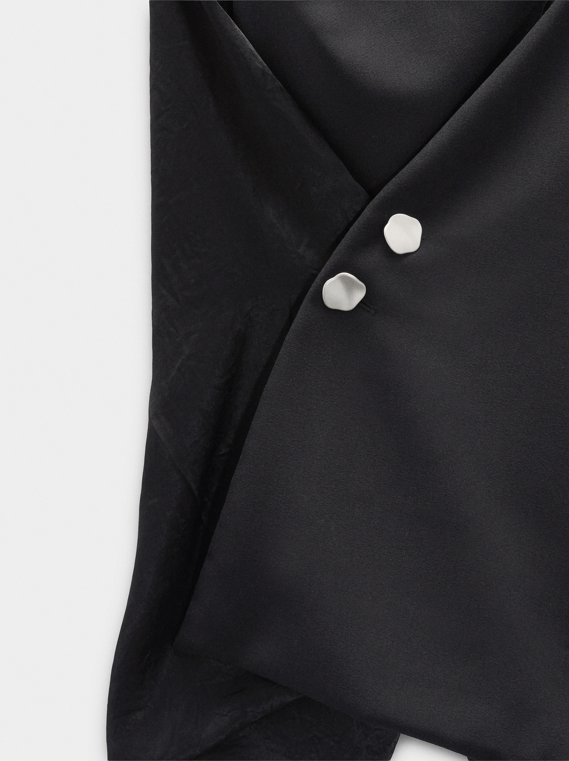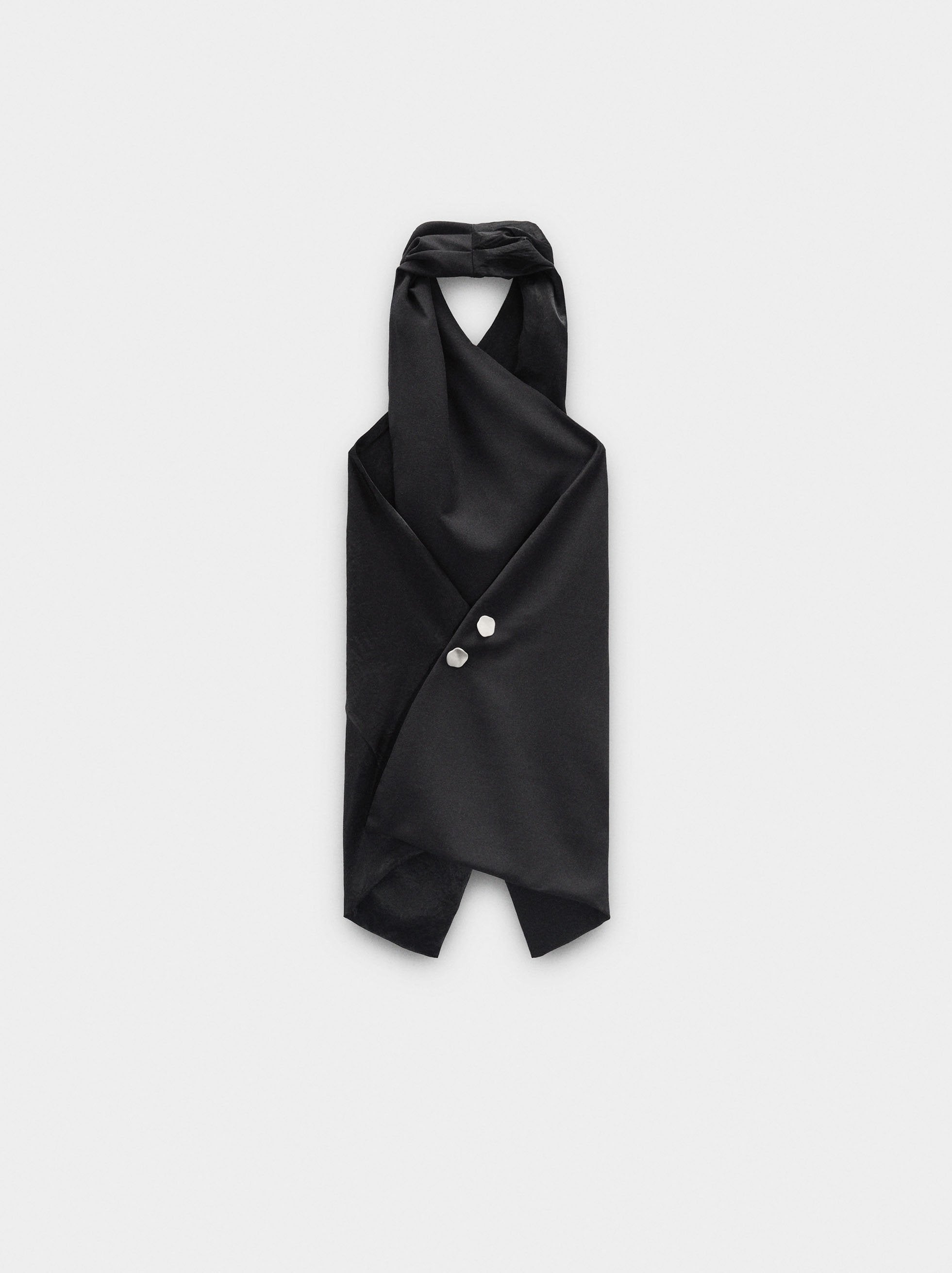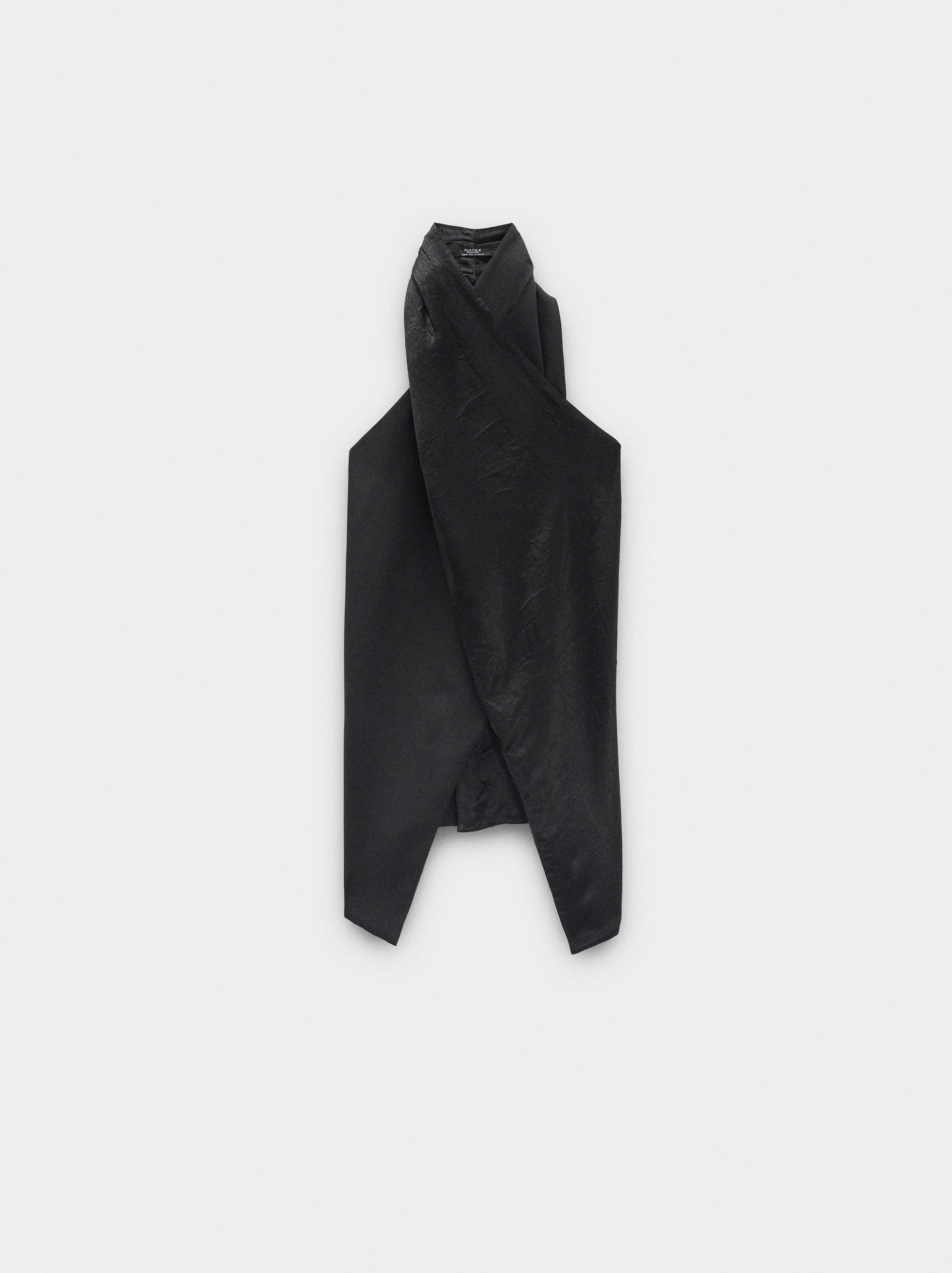 Top cruzado de acetinado. Cuello halter. Efecto arrugado. Espalda descubierta. Cierre con botones en la parte posterior. La modelo mide 1,79 m y lleva la talla XS-S.